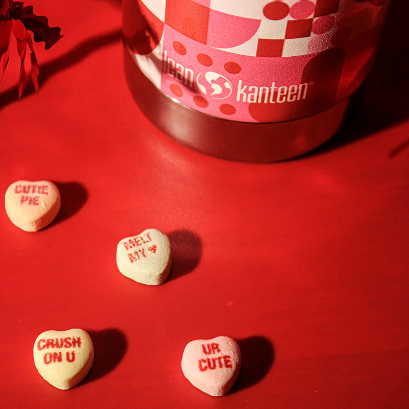 Our limited edition Valentine's Day 20oz TKWide insulated water bottle was designed to create the best water bottle, iced coffee mug, and sport bottle, all in one. Featuring red and pink block graphics on our Klean Coat™ finish, includes leak proof Twist Cap with built-in reusable steel straw. Warning: This bottle might steal your heart. Its glossy spot varnish has a textured finish that feels as good as it looks—like a little love note for your fingertips.